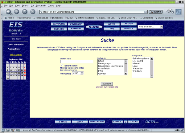 In diesem Fall kann sich der Studierende dem Archiv oder der Suchfunktion bedienen. Über die Suchfunktion kann er nach bestimmten Worten suchen und seine Suche auf spezielle Schlagworte oder Sachgruppen begrenzen.