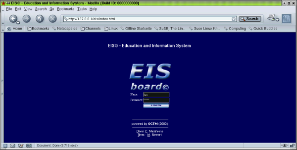 Zunächst muss auch der Studierende sich mit den ihm zugeteilten Zugangsdaten auf der EIS-Domain seiner Hochschule anmelden.